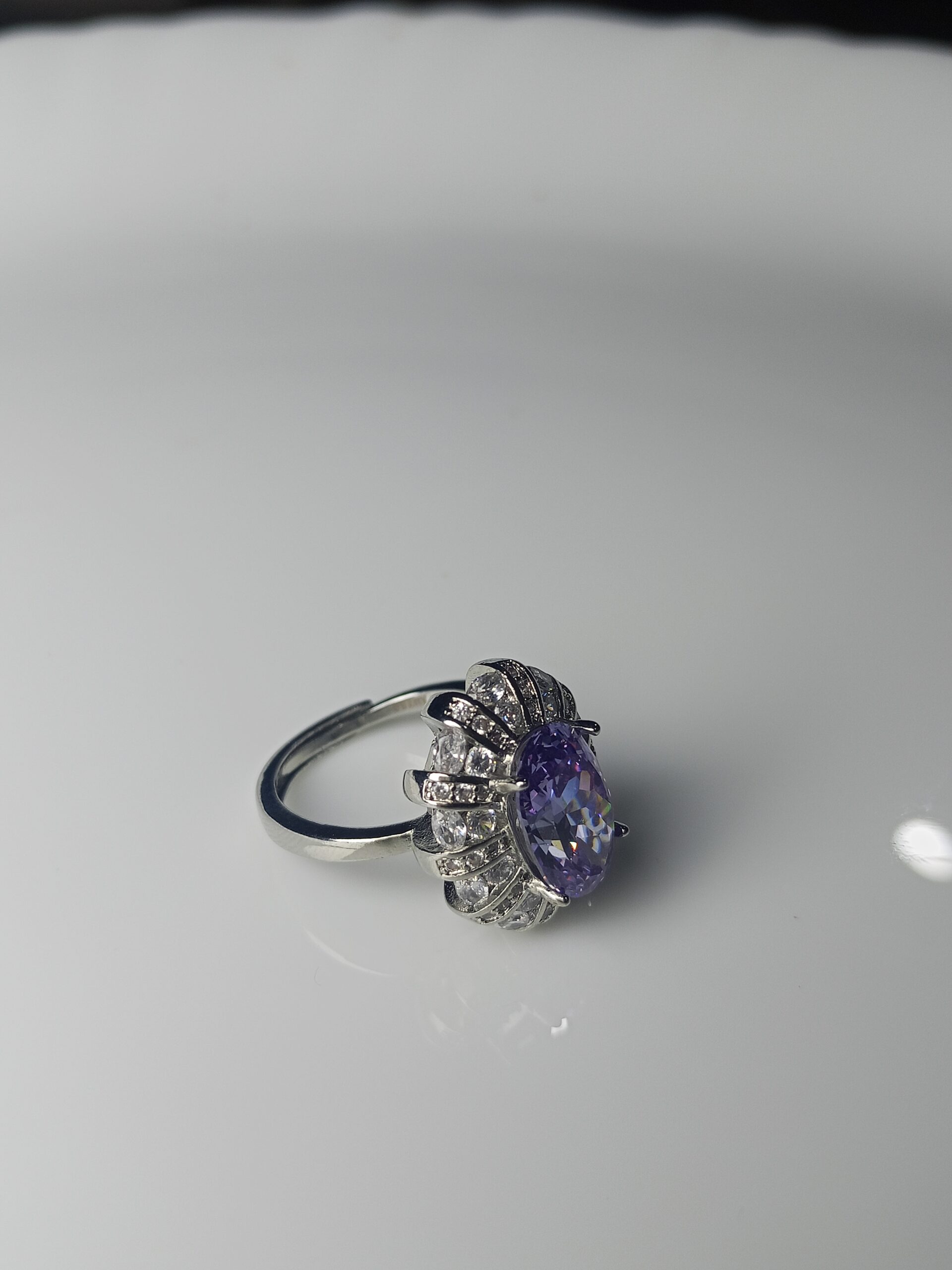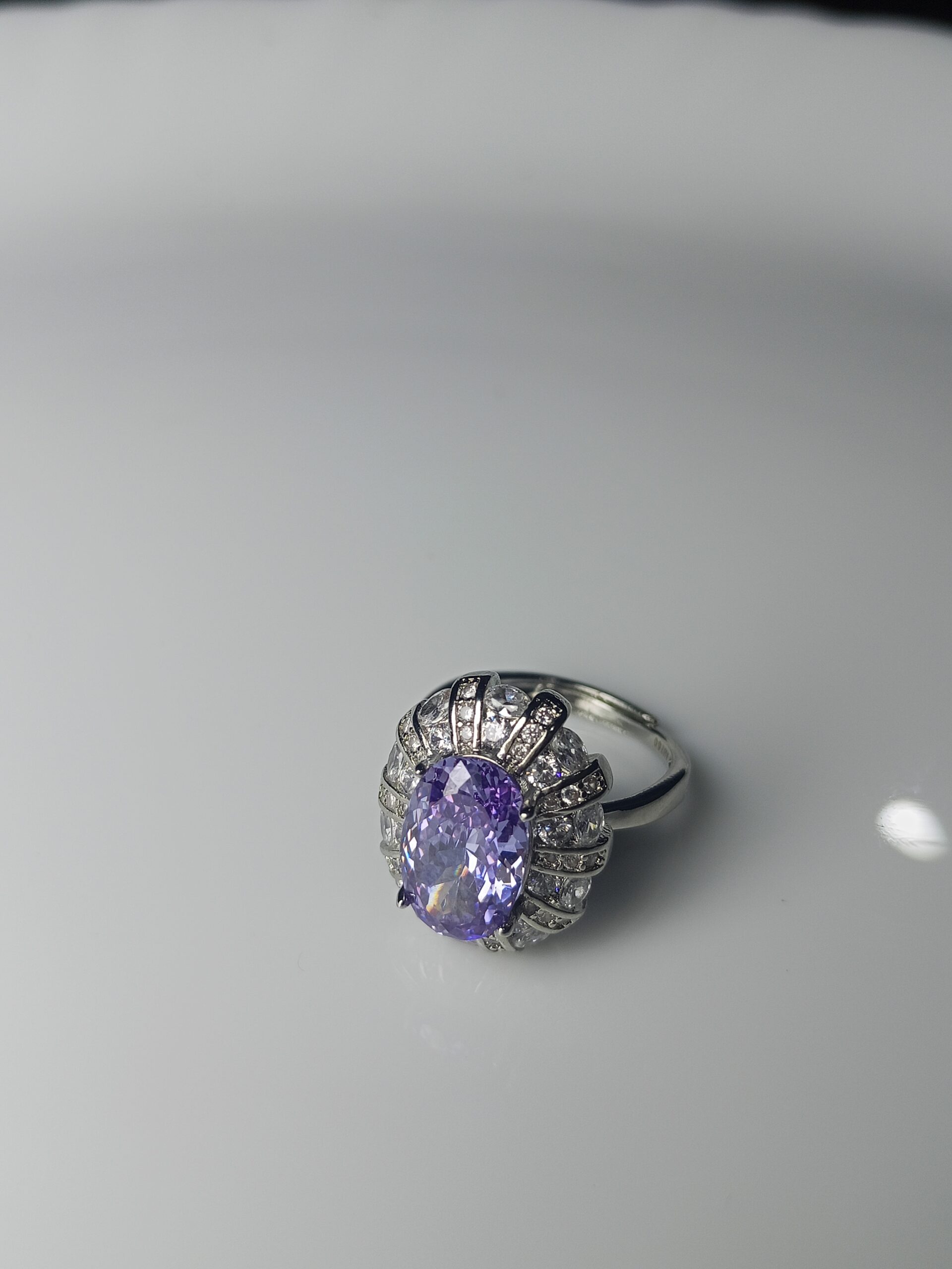 • Elegant Center Stone: Features a stunning oval-cut crystal in a delicate lavender/light purple shade.