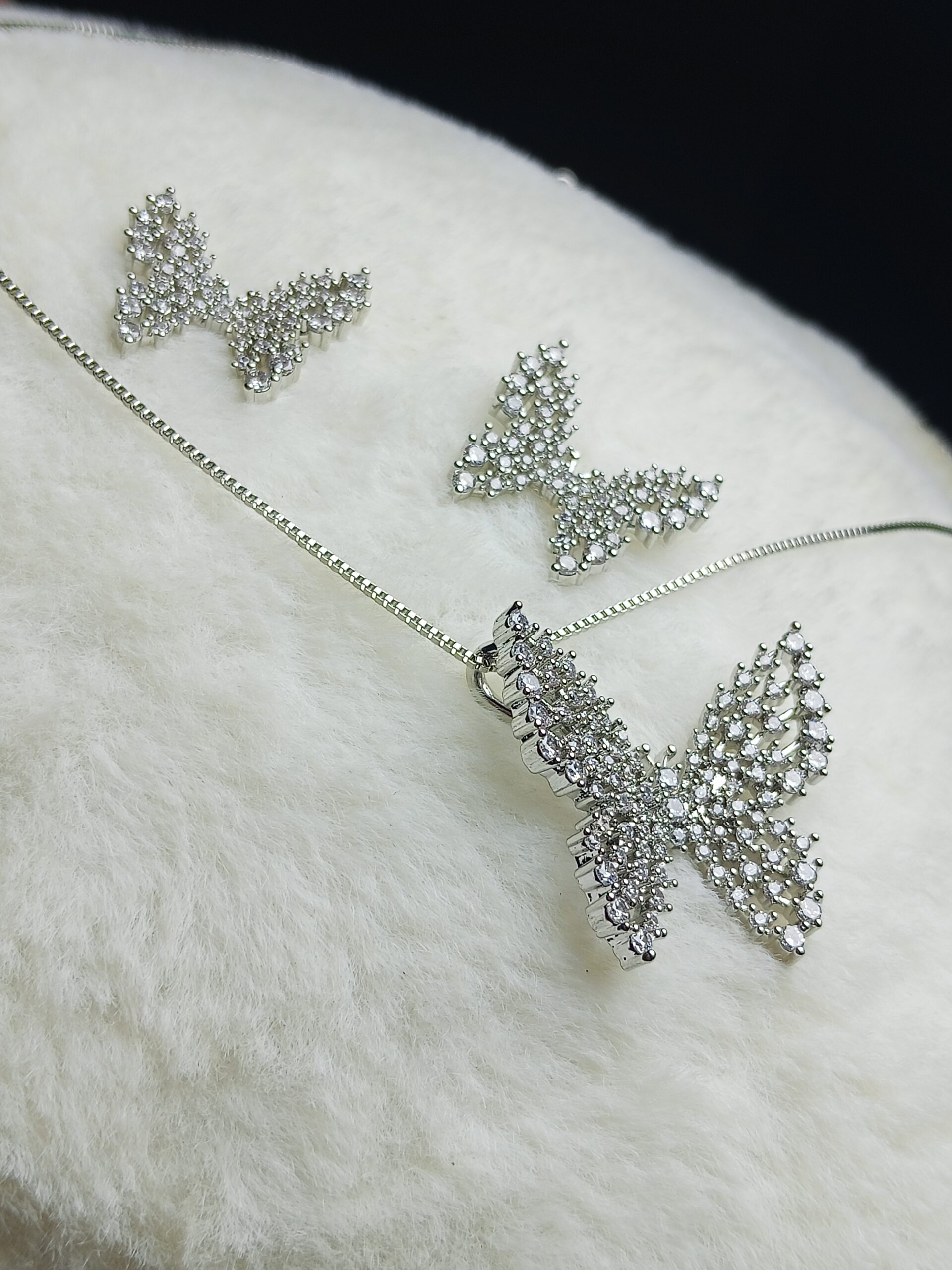 Sparkling Pave CZ Butterfly Necklace and Earrings Set