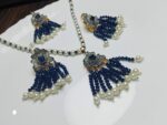 Traditional Navy Blue Beaded Tassel Necklace & Earring Set with Pearls | Festive Wear