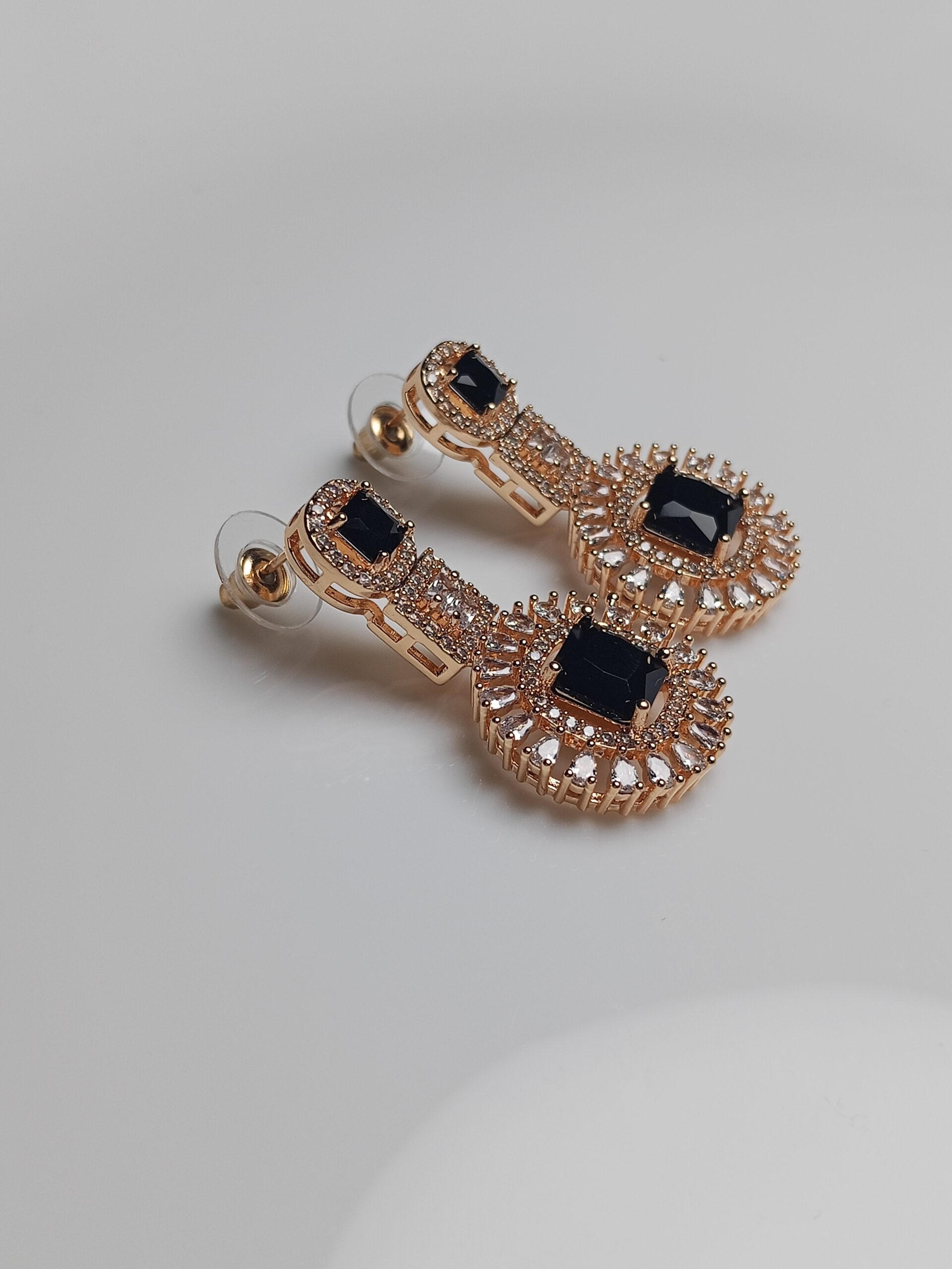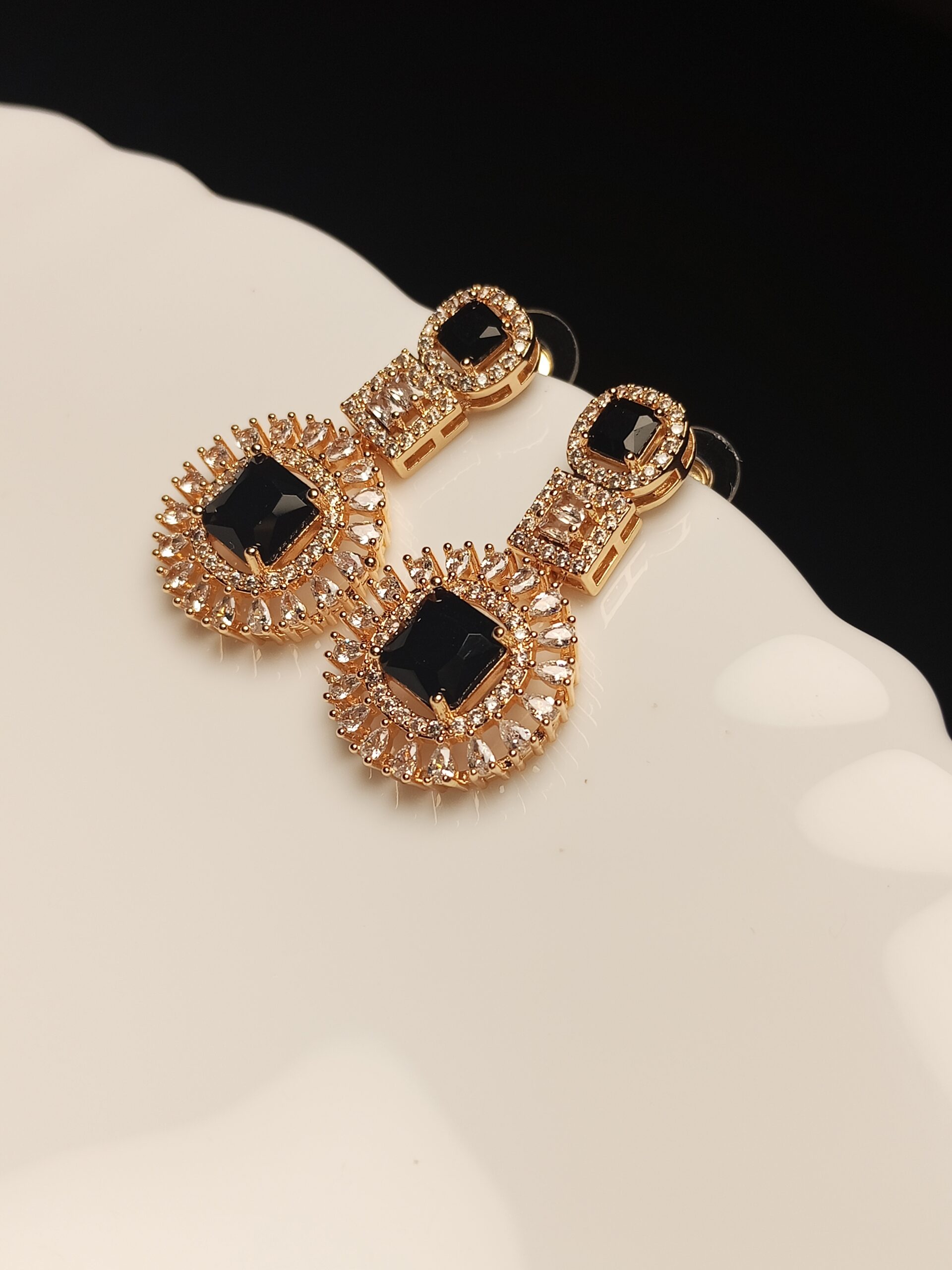 Vintage-Inspired Black Gemstone Drop Earrings in Gold-Tone Zircon