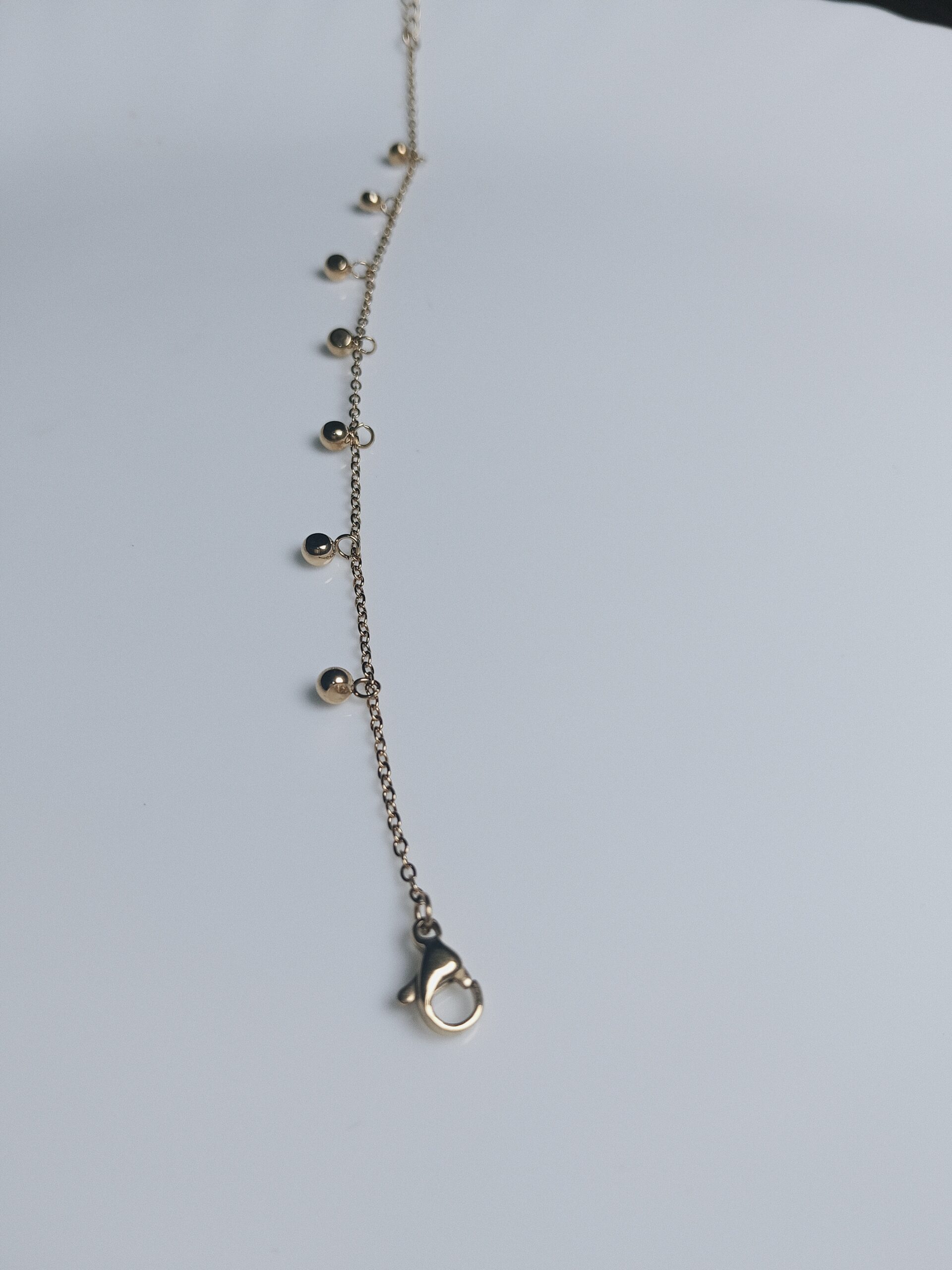- Design: Ultra-fine chain with small, fixed gold spheres or ball charms.